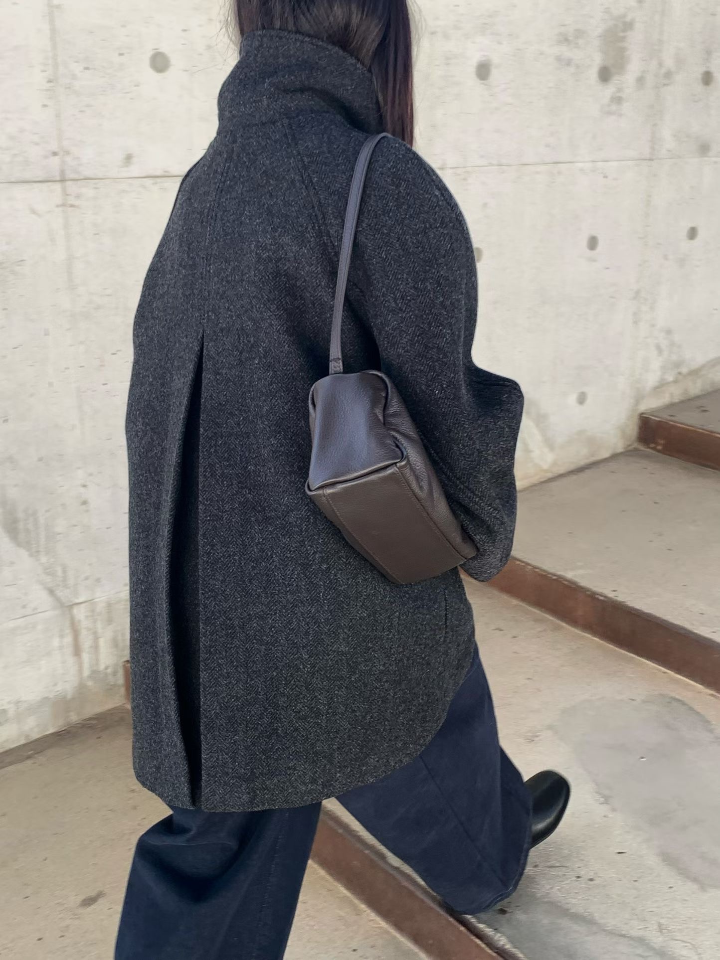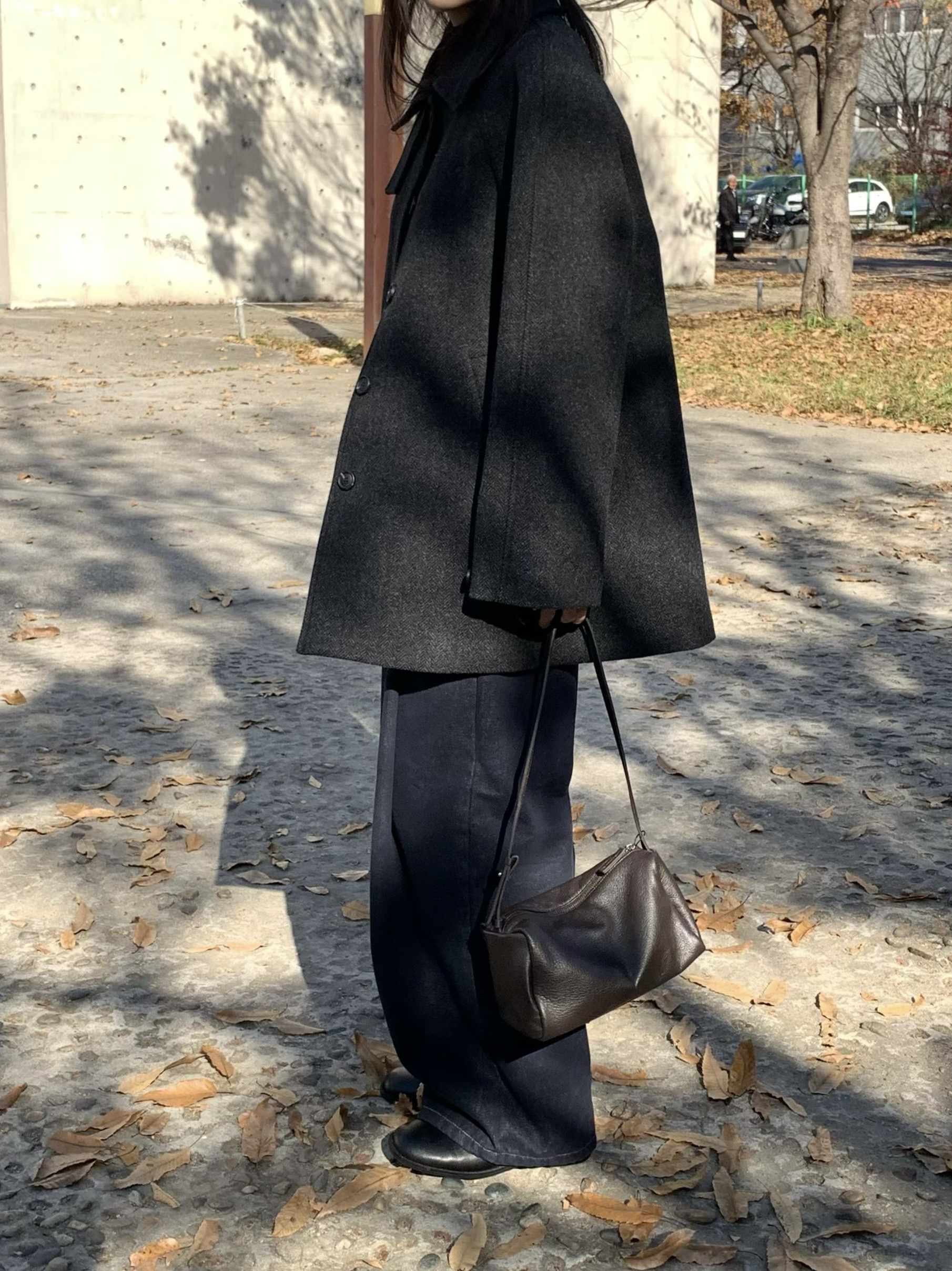 (instock) 簡約牛皮拉鍊肩背包 - 在台現貨