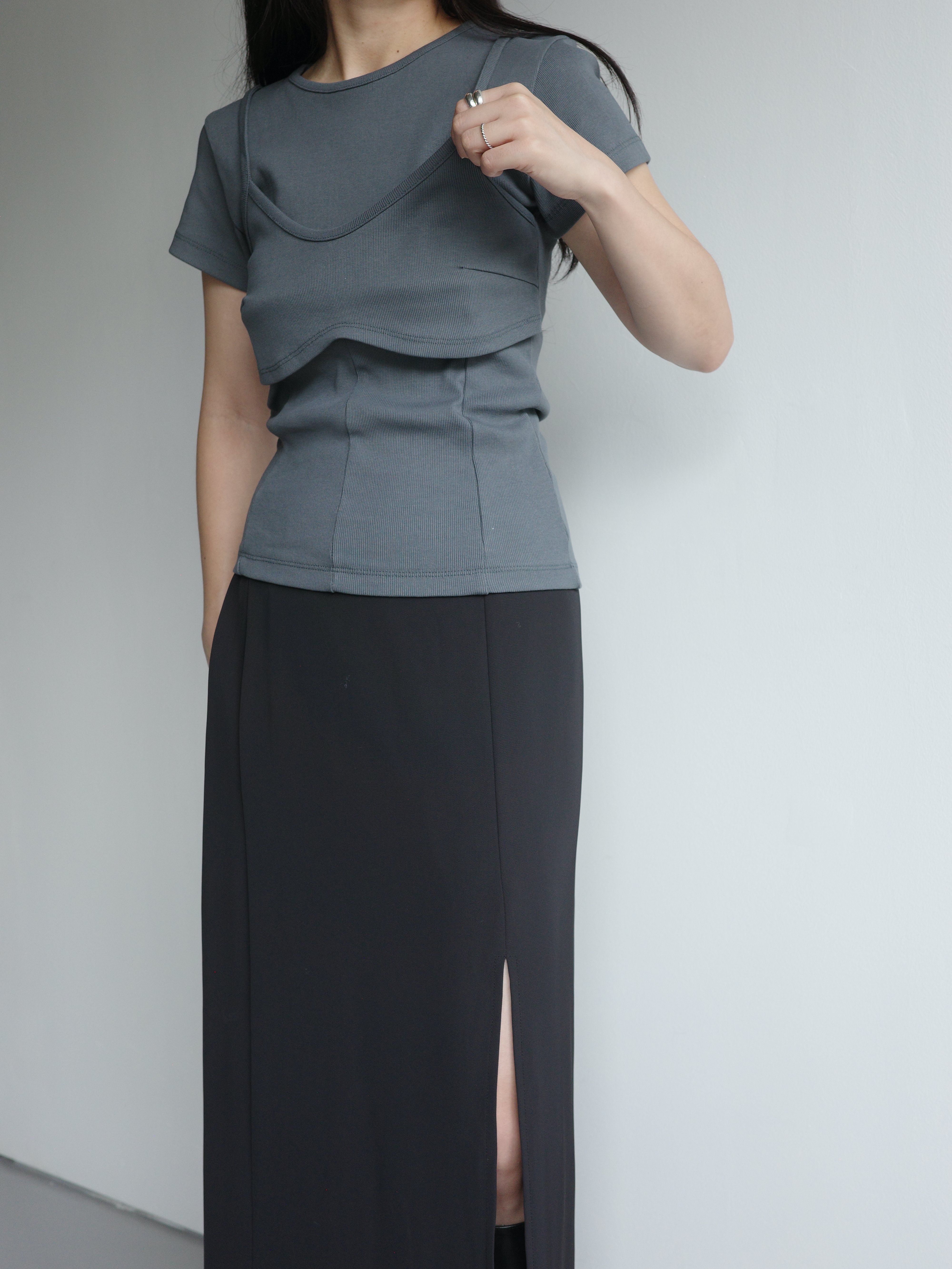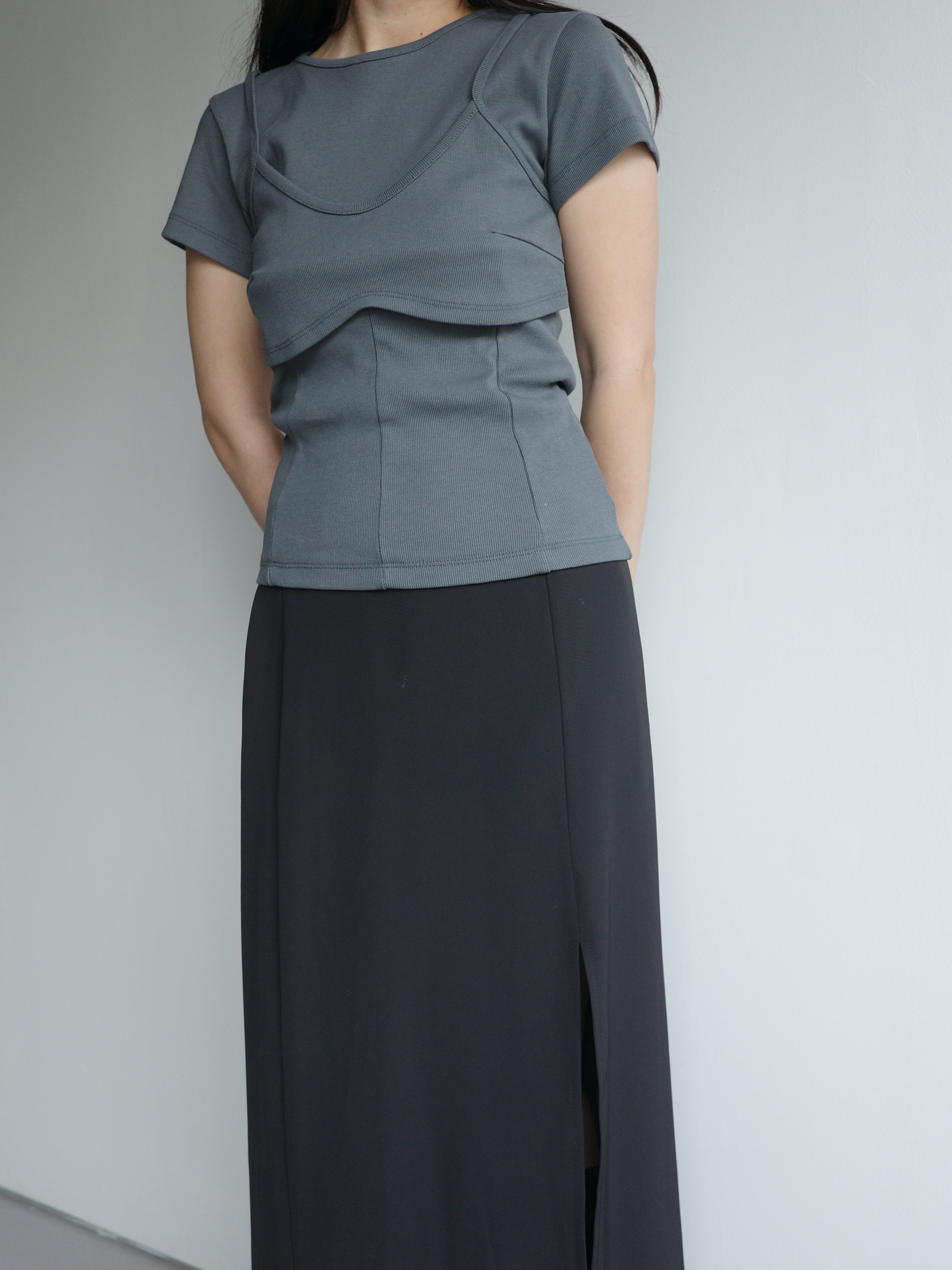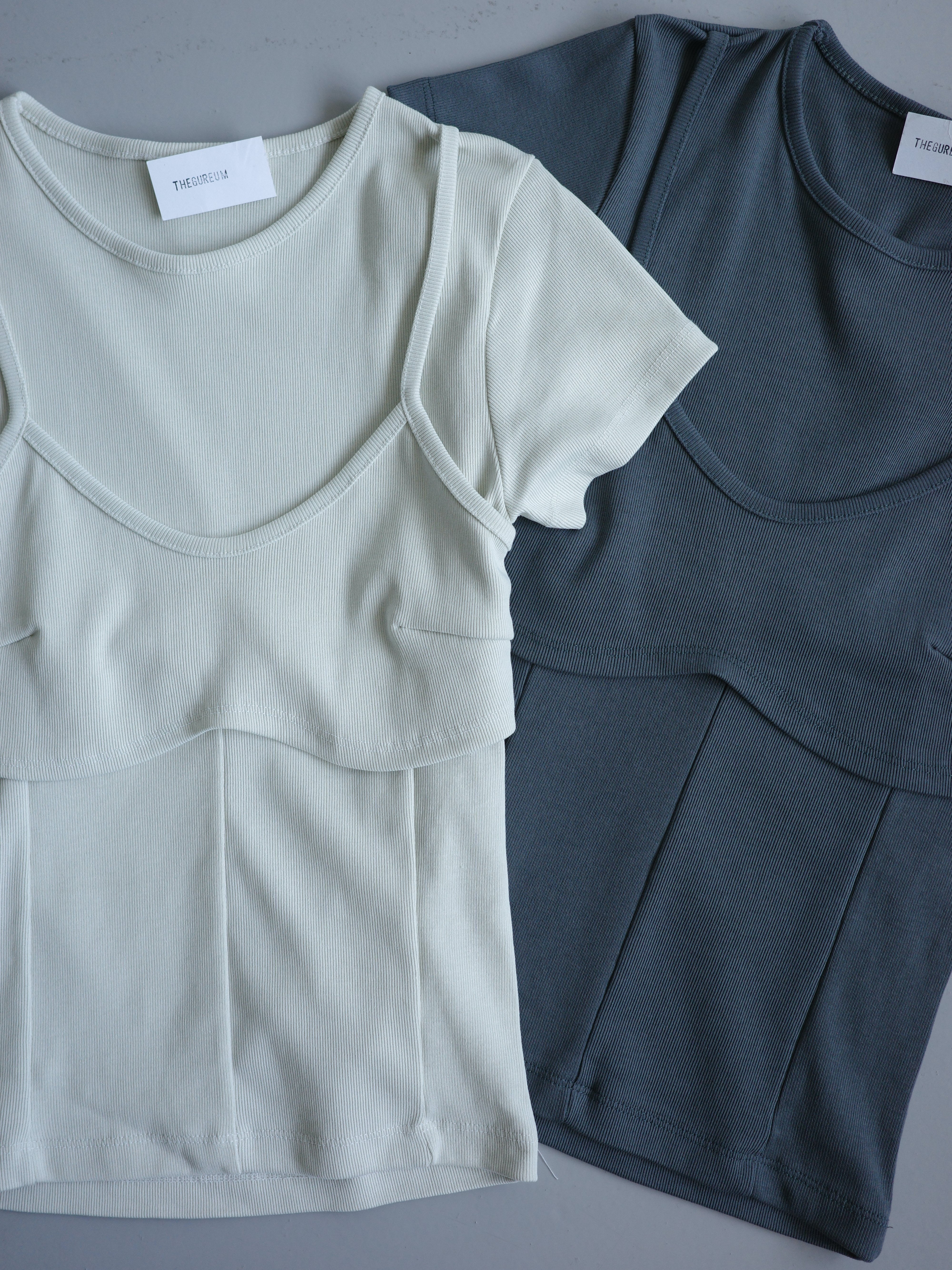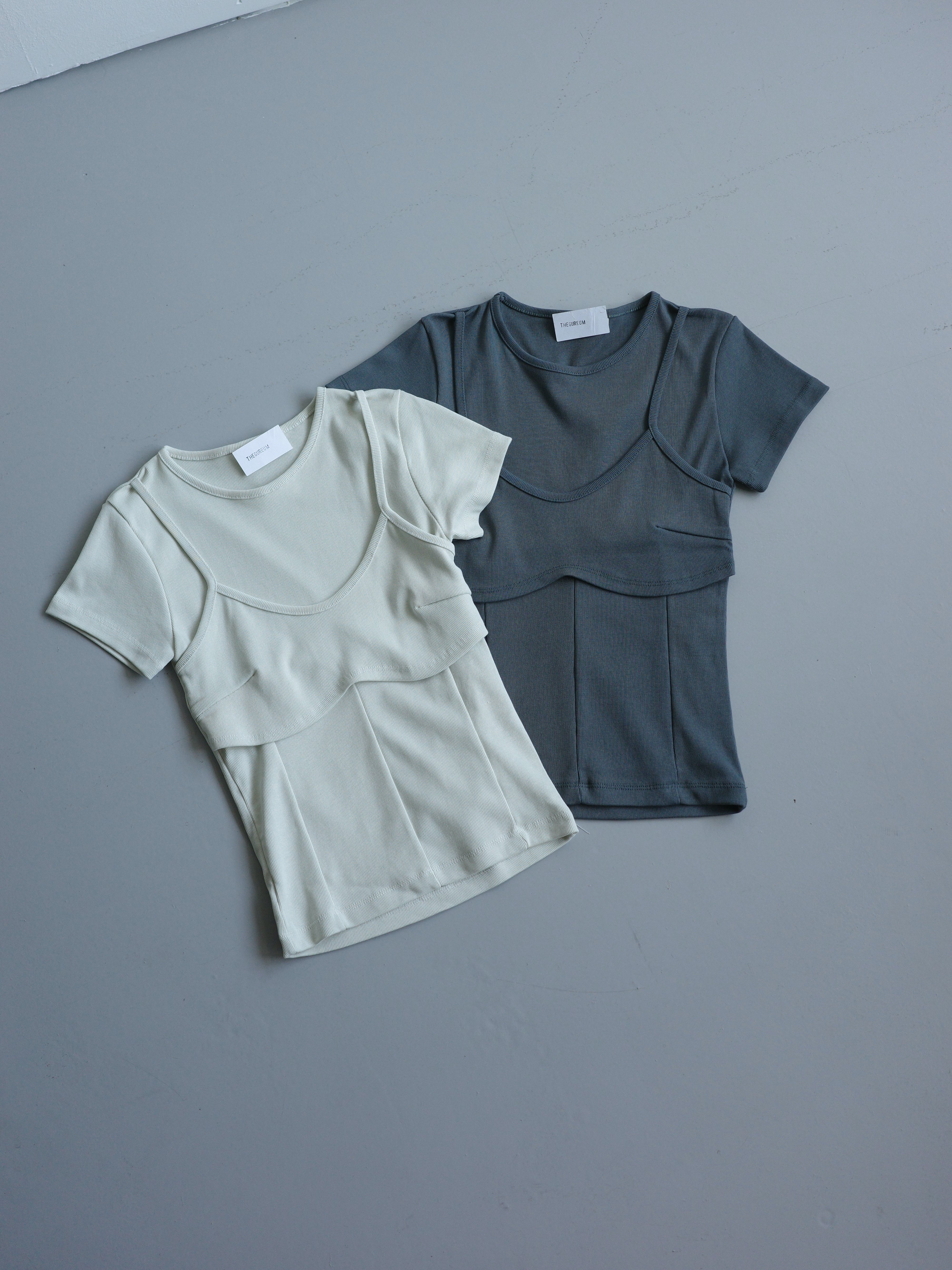假兩件造型上衣, 面料是比較扎實的直紋棉