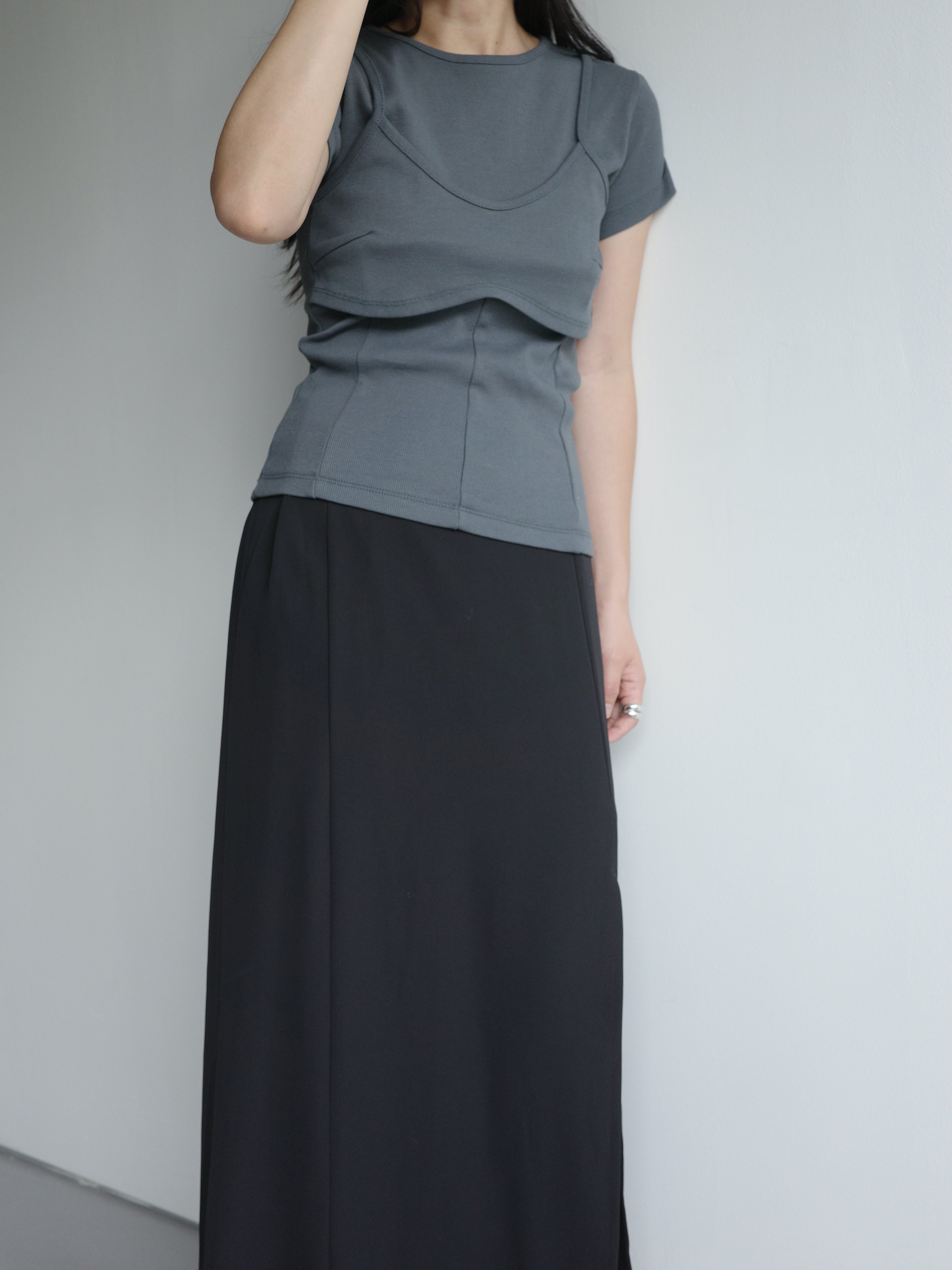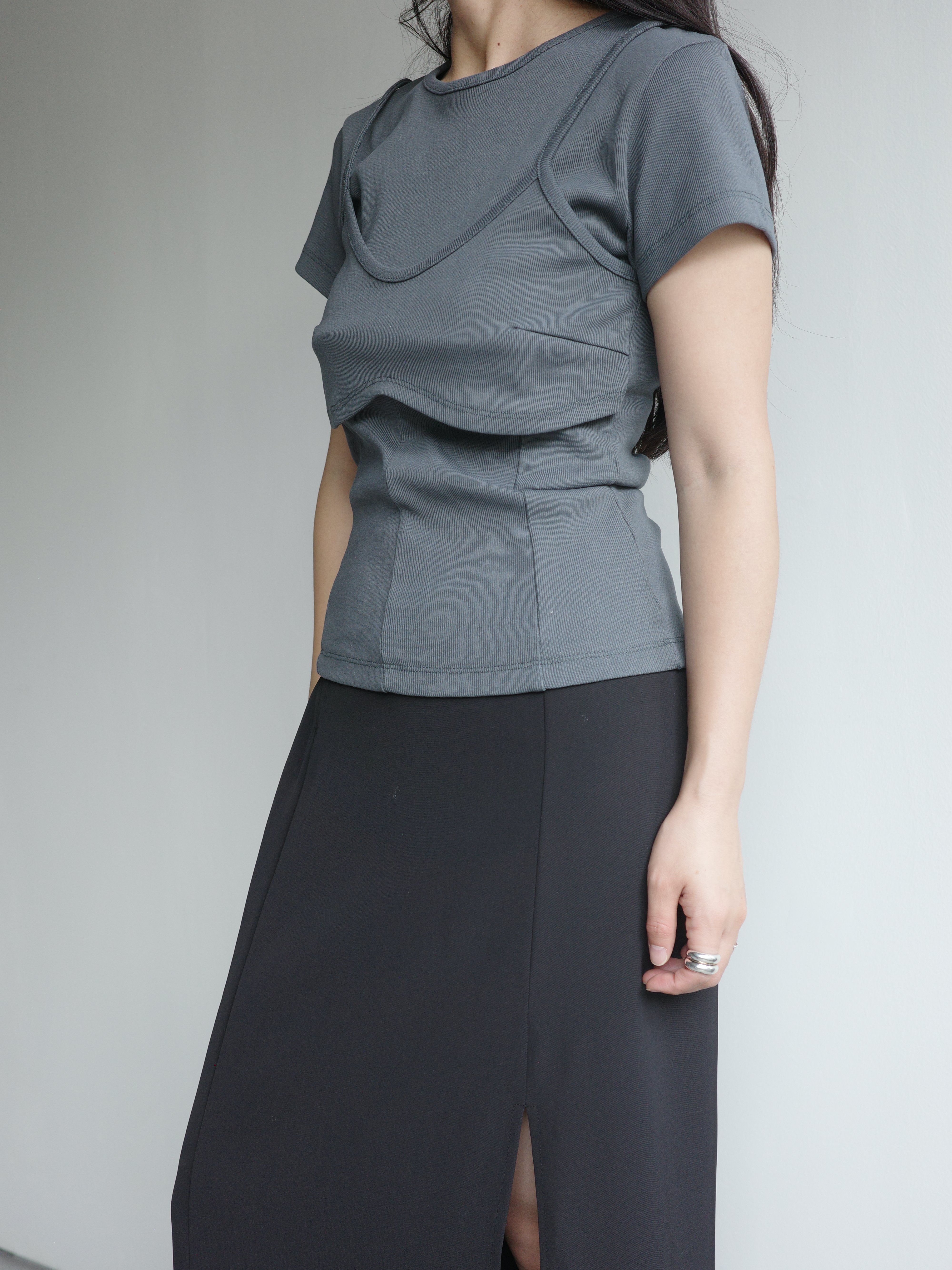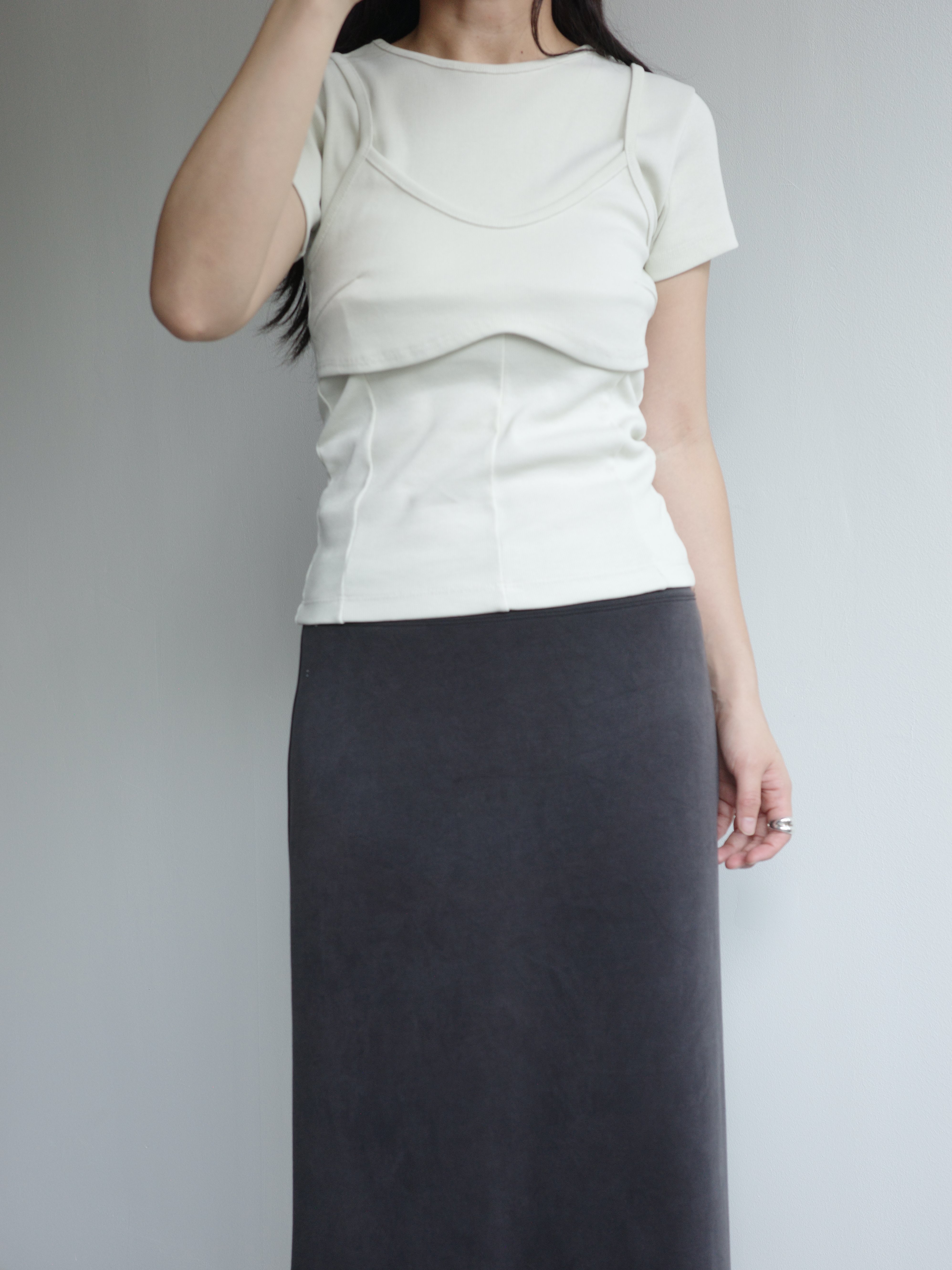 假兩件造型上衣, 面料是比較扎實的直紋棉