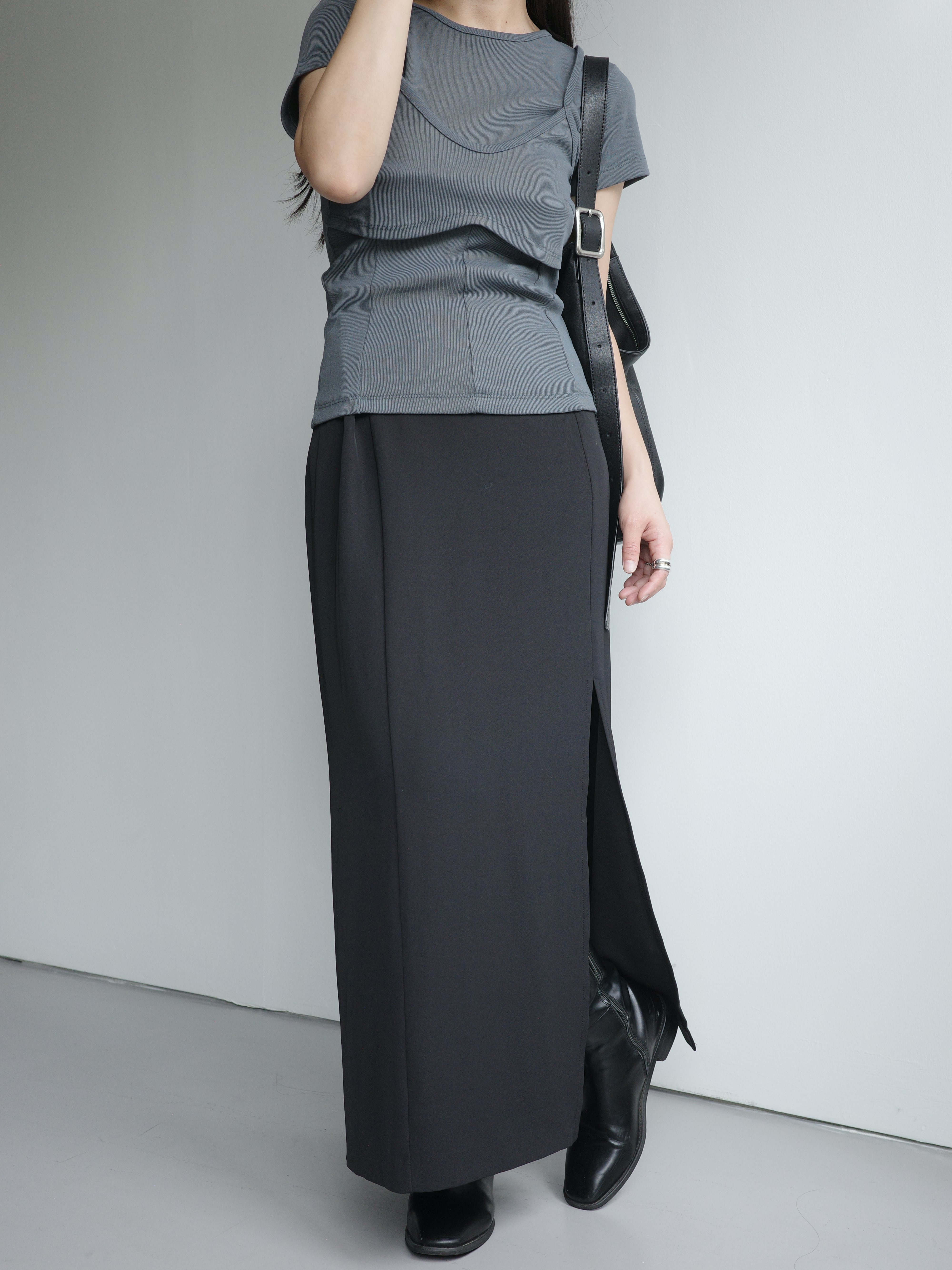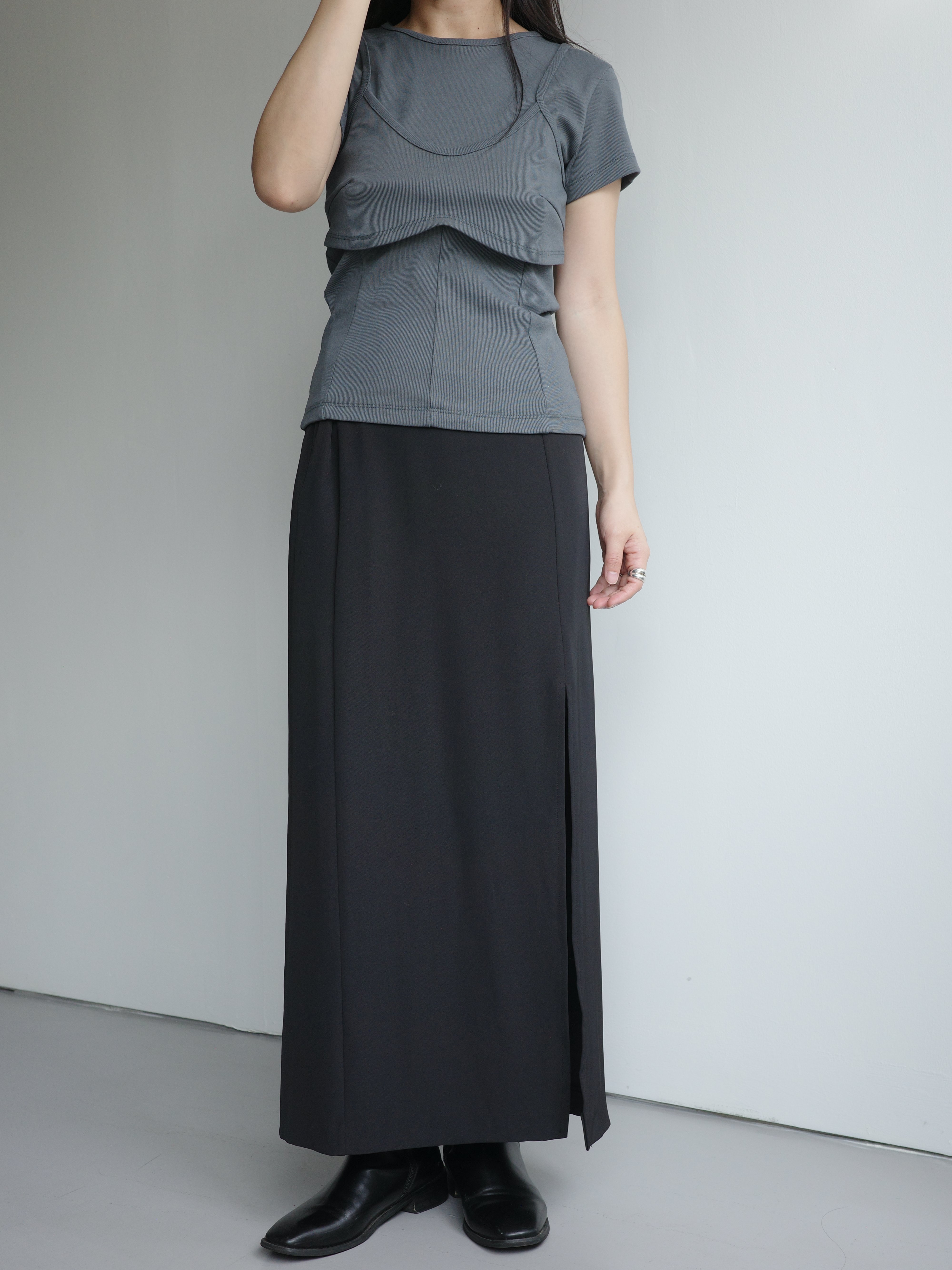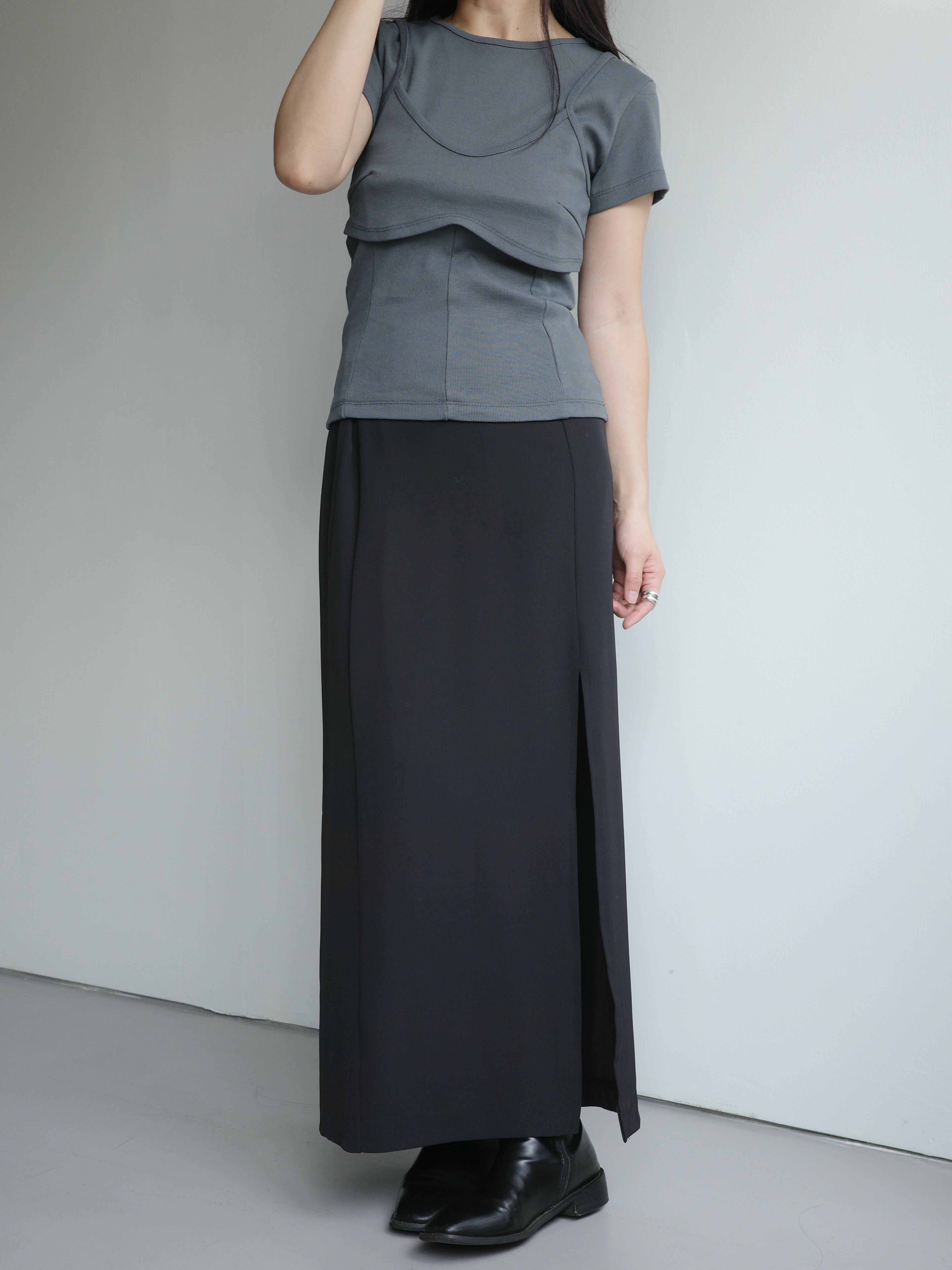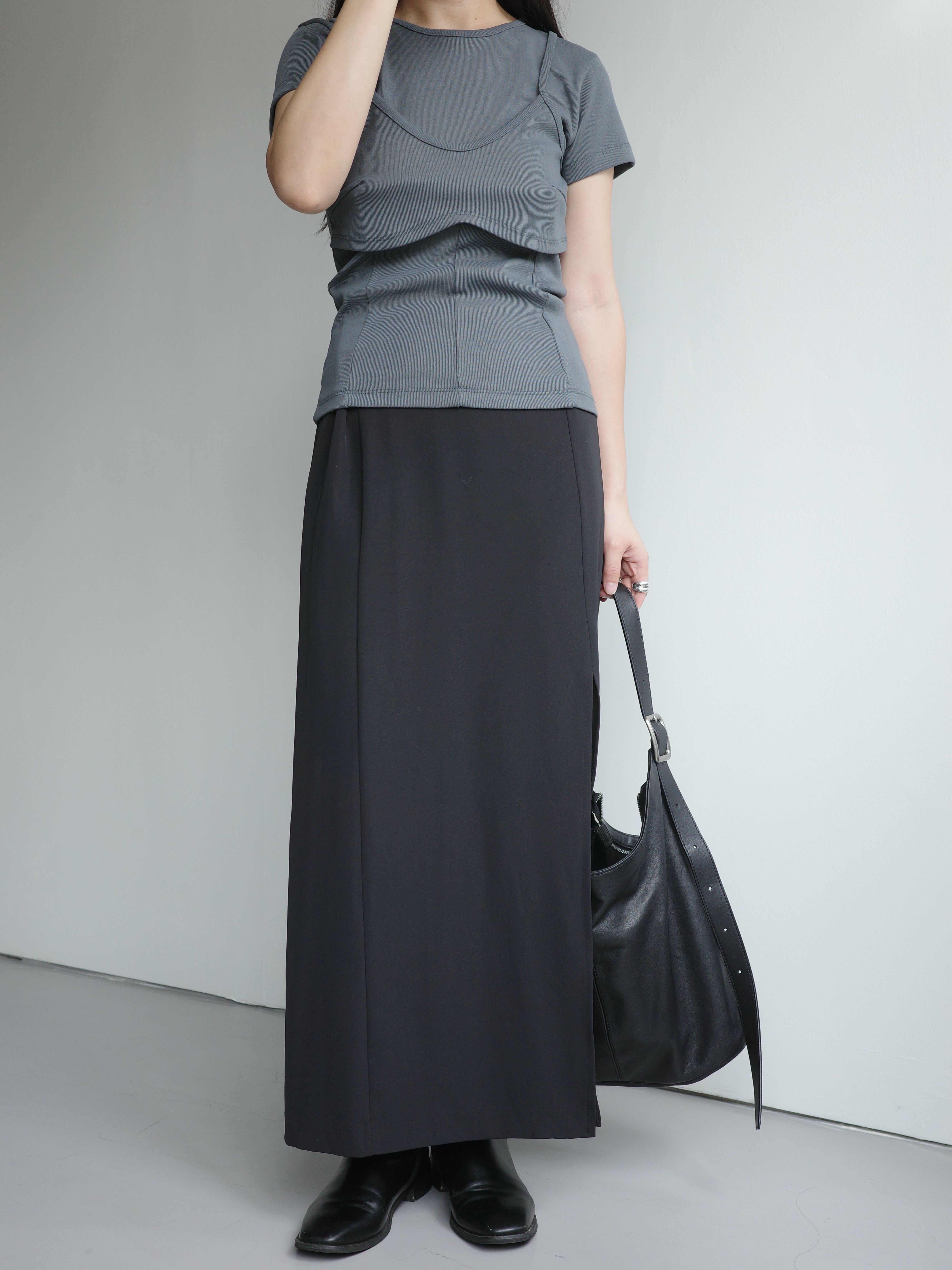 假兩件造型上衣, 面料是比較扎實的直紋棉
